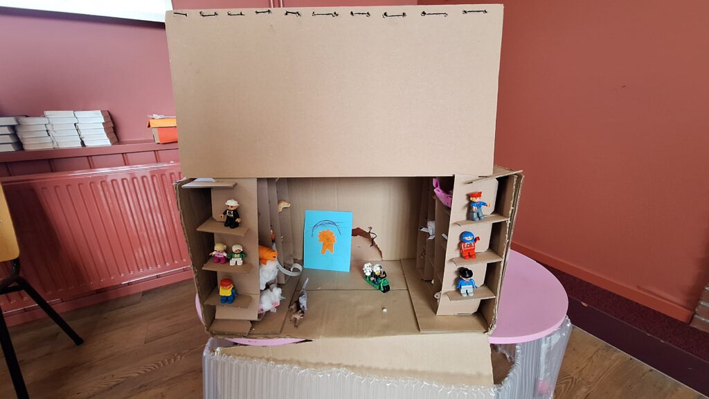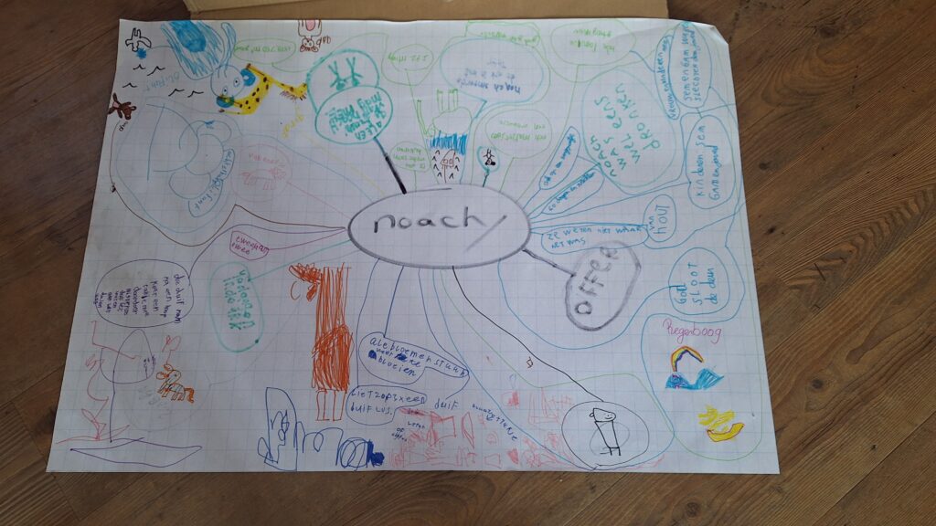Bij de ingang stond een zelfgemaakte Ark met daarin allemaal figuurtjes, die dieren en personen voorstelden die in de Ark meegingen.